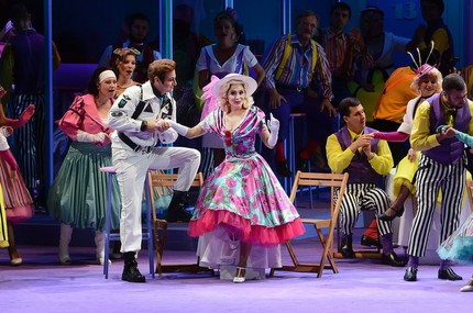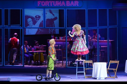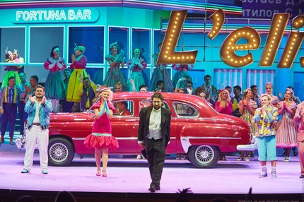 так как речитативы secco на ней неизбежно бы акустически «потерялись», что ослабило бы динамику общего восприятия. О музыке, певцах-солистах и маэстро-дирижере речь еще впереди, но важно, что новая постановка в стиле пин-ап – вовсе не режиссерский «прикол». Важно, что мюзикл на горло бельканто не наступает, а двухактная melodramma giocoso (веселая мелодрама) на либретто Романи – именно так жанр опуса гением из Бергамо обозначен в партитуре – остается тем, чей ей и предназначено быть.
