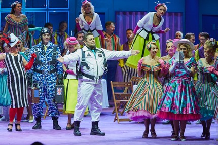 Мизансцены драматургически и пластически поставлены весьма эффектно и скрупулезно, и даже когда «россиниевская грядка артишоков», пританцовывая в хоровых ансамблях, разрастается по фронту между флангами сцены, это всё равно увлекает, ведь самодостаточно замкнутый мир спектакля – точно просчитанная оперная феерия: нисколько не аляповатовая, но визуально яркая!
