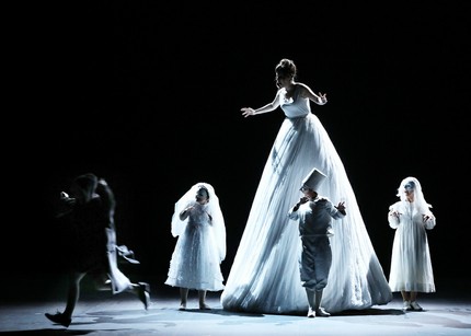 Режиссер Жоэль Помра выбрал для спектакля мрачную эстетику в духе Тадеуша Кантора с его «Мёртвым классом» с игрушечным оттенком. Темноту обычно называют «другом молодежи», но когда отсутствует и динамика развития и рельефность, или атмосфера тайны как таковой — она становится другом скуки. Редкие сценографические придумки, вроде костюма трёхметровой феи, помогают мало. Да и музыка Бусмана в спектакле играет вспомогательную роль: тембровые находки, сверхвысокие и низкие регистры лишь в редких случаях привлекают внимание.