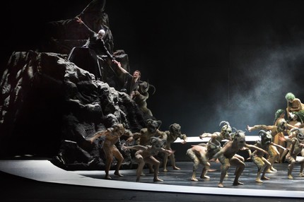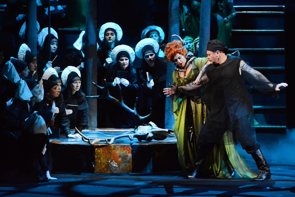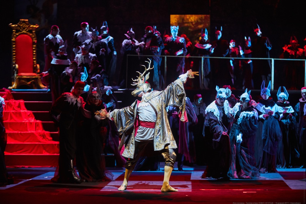 На протяжении трех актов трудно даже понять, интерьер это или же экстерьер, но не это главное, ведь атмосфера тревожного саспенса, который разрешится в кровавом финале, угадана постановщиками удивительно точно. На мрачную контрастность «света и тьмы» неожиданно интересно проецируются события мифа об Актеоне.