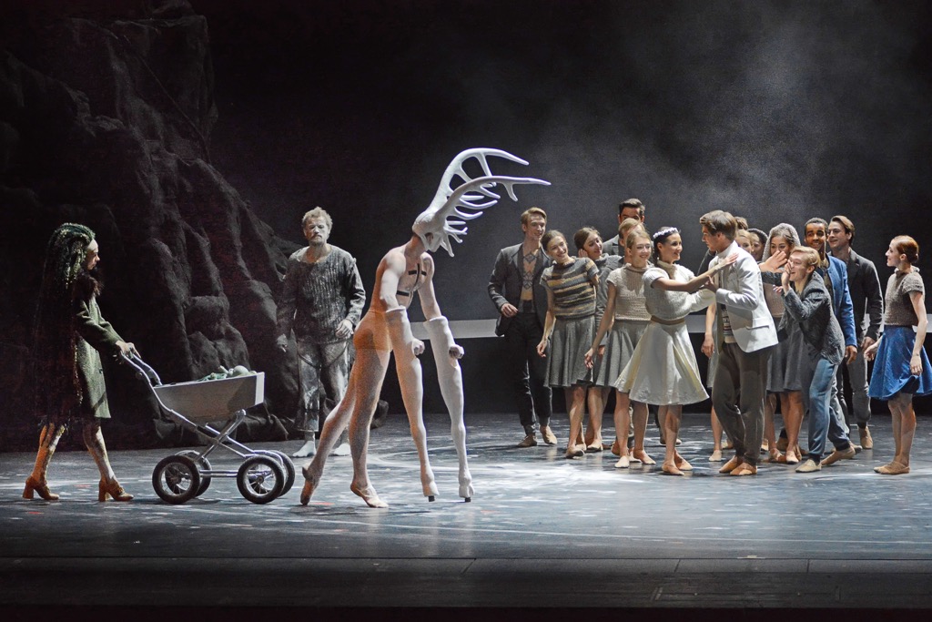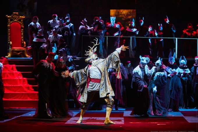 С образа оленя современный балет «Пер Гюнт» хореографа из Румынии Эдварда Клюга начинается и этим же образом, с завершением главным героем круга жизни и смерти, очерченного ему судьбой, заканчивается. Главного героя оперы «Бал-маскарад», графа Ричарда Варвика, режиссер Вячеслав Стародубцев к ассоциации с образом оленя подводит постепенно. Кульминация достигается в финальной маскарадной сцене, и на сей раз в ткань спектакля закладывается миф об Актеоне, нарушившем покой богини Артемиды, превращенном ею за это в оленя и растерзанном не признавшей его сворой своих же охотничьих псов.