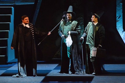 Прибавьте к роковому любовному треугольнику «Ричард – Амелия – Ренато» Ульрику, де-юре «вершащую» его судьбу, хотя де-факто она здесь ни при чем и лишь предсказала неизбежное, и получите «квартет». А добавьте к нему пажа Оскара (теперь он выведен прелестным шутом в колпаке с бубенчиками), сложится «квинтет», каждый из участников которого в вокальном аспекте должен быть оснащен безупречно. Благородно-бархатный баритон Алексей Зеленков и проникновенно-лирическая певица-сопрано Дарья Шувалова, запомнившиеся еще по «Любовному напитку», высоким уровнем вокальной культуры на этот раз уверенно впечатлили соответственно в партиях Ренато и Оскара. Музыкально яркую трактовку образа Ульрики предложила публике меццо-сопрано Светлана Токарева.