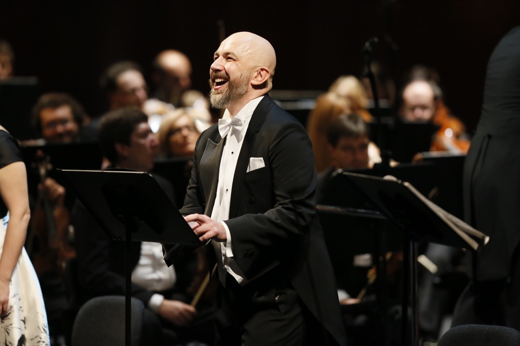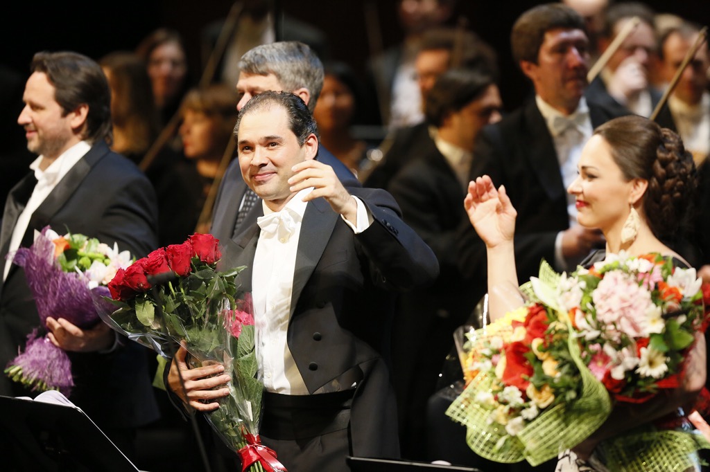 Итак, концертное исполнение: оркестровая яма убрана, на месте нее – литерные ряды партера, оркестр с хором – на сцене, а певцы-солисты – перед оркестром у рампы. В трехактной опере Римского-Корсакова – шесть картин, и она поделена антрактом на две части (по три картины в каждой). То, что дирижер Туган Сохиев обстоятельно хорошо поработал с оркестром, слышно уже с увертюры. Если судить и по давно побывавшей в его дирижерских руках, но хорошо запомнившейся «Сказке о царе Салтане» в Мариинском театре, и по упомянутой выше «Снегурочке» в Большом, то Римский-Корсаков, несомненно, – его композитор. И эта русская до мозга костей музыка с точки зрения благородно-чувственной красоты звучания, тонких нюансов и рельефно проступающей «академичности» находит в лице маэстро Сохиева благодатного художника.
