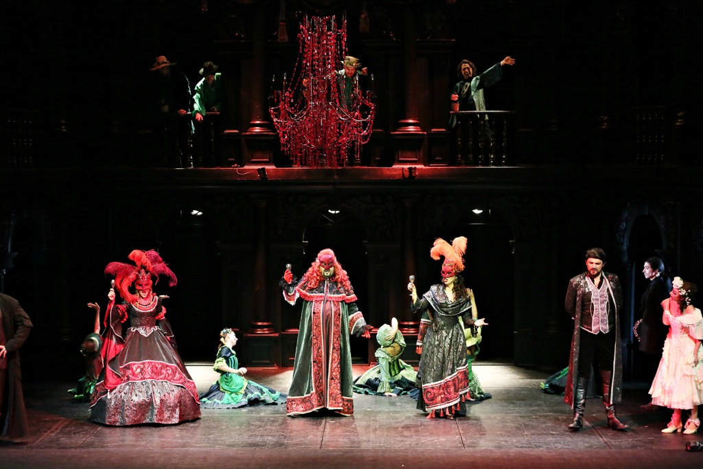 В начале оперы Лепорелло лишь предлагает некому незнакомцу ознакомиться с содержимым дневника за небольшую плату, но сделка не происходит. Зато незнакомец «случайно» оставляет в нужном месте кинжал: им-то Дон Жуан и «убивает» Командора. Так что игра в Дон Жуана, начинаемая Доном Оттавио, вполне логически на Доне Оттавио и кончается. Эффектно? Да! Креативно! Конечно! Но и ото всех «но», связанных с подобным переосмыслением исходной драматургии, никуда ведь не деться! Примирение же довольно легко наступает через саму музыку, которую оркестр (дирижер – Александр Гойхман), хор (хормейстер – Мария Гергель) и солисты несут зрителю и слушателю с подкупающей искренностью и несомненным артистическим обаянием, хотя между европейскими рафинированными канонами исполнения партитур подобного рода и обсуждаемым спектаклем ощутимая дистанция, конечно же, пролегает…