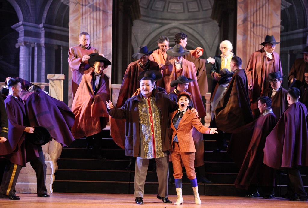 Обсуждаемая постановка Бурятского театра оперы и балета возвращает на шведскую историческую почву, благо сделать это технически не так уж и сложно: то, что требуется вернуть в привычный на автопилоте итальянский текст либретто «Бала-маскарада», минимально, и, в принципе, на слух не особо даже заметно. То, что в спектакле на сей раз «живут» не Риккардо, Ренато и заговорщики Самуэль с Томом, а король Густав III, граф Анкарстрём и граф Риббинг с графом Горном, на уровне вербального восприятия не родного для тебя итальянского языка впервые отчетливо понимаешь лишь в финале первой картины третьего акта (в сцене заговора). На вопрос «Qual è dunque l’eletto» («Итак, кто избран?») звучит ответ «Anckarström» вместо «Renato» (вопрос, естественно, задает сам Анкарстрём, а отвечает на него Риббинг). Как элемент необычности в память меломанов это, несомненно, врежется, хотя дело, понятно, не в именах персонажей, а в драматургии оперы: все музыкальные номера партитуры хорошо знакомого, привычного нам «Бала-маскарада» Верди – на своих законных местах: ничего ведь не меняется!