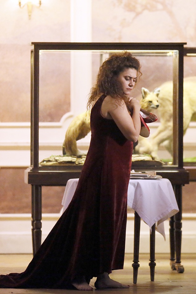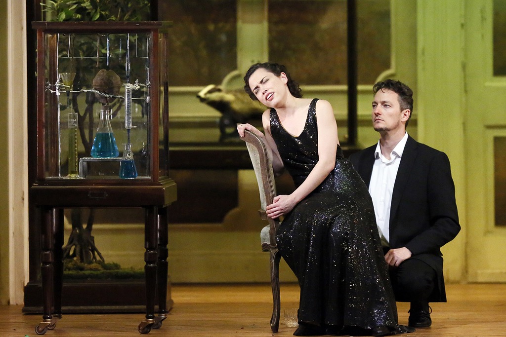 Художник-постановщик «Альцины» Хлоя Лэмфорд загнала героев во все тот же «дом в разрезе», где вышеупомянутый светлый и дорого обставленный будуар, окружают темные обшарпанные клетушки, а на втором этаже над ним – цех по переделке людей в чучела (как выяснилось в финале, действующий и в обратную сторону). Но в «Роделинде» все-таки мелкая детализация рисунка актерской игры была значительно четче и интереснее. Конечно, были отдельные сильные и тонкие моменты, например, как влюбленный в Моргану начальник охраны Оронте имеет возможность находиться не только в будуаре, а повсеместно, видеть ее реальную внешность, но все равно он продолжает ее любить…