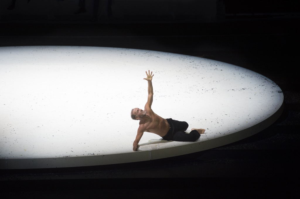 Анонс обещал новые волнующие впечатления: «Обращаем ваше внимание, что в спектакле используются стробоскопические эффекты». Оказалось, имеется в виду сверкание молнии: гремит гром, и на сцене появляются боги. Спасаясь от пресыщенности и скуки, они забавляются с людьми и, в отличие от смертных, носят не черное, а голубое.