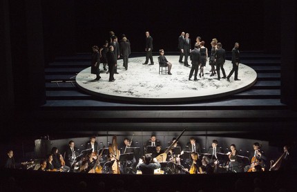 Люди в унылой одежде ходят по светлому кругу, им отпущено мало времени, они пьют шампанское. Это о «Травиате»? Нет, о новой гамбургской постановке «Возвращения Улисса на родину», одной из трёх сохранившихся опер Клаудио Монтеверди. Эта опера была написана семидесятитрёхлетним композитором в 1640 году для венецианского театра Сан-Кассиано, первого публичного оперного театра.