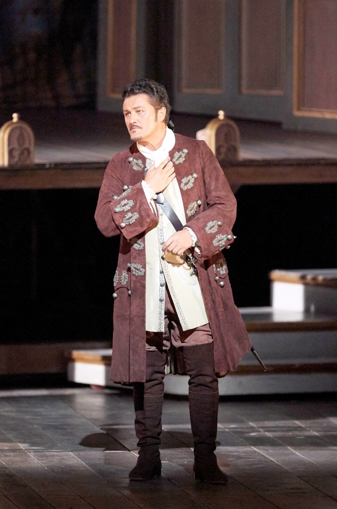 В этой связи чувственный тембр Петра Бечалы задаёт немного не тот эмоциональный градус: в безусловно безупречном вокале певца насмерть растворяется драматически значимая для сюжета шальная непутёвость офицера, влюблённого во «всё, что шевелится». У П. Бечалы образ получается искренне душещипательным, а должен был бы быть как брутально растерянным, так и заразительно одержимым. Словом, всё было красиво, но исторически не совсем убедительно. А ведь именно на историческую достоверность претендует эта постановка, созданная в традициях страшно зависимой от красивых тканей и ярких красок лондонской сцены.
