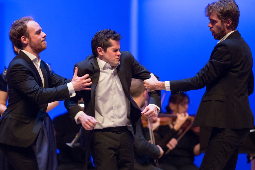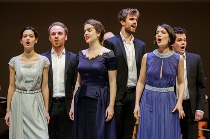 Весьма удачная склейка фрагментов из семи-опер Пёрселла «Тимон Афинский» и «Пророчица» стала центральным игровым эпизодом второго отделения на тему Бахуса, вызвавшим прилив оживления публики. В первом отделении аналогичную роль аниматора в зале взял на себя кэтч «The singing club». Но в этом пастише, в этой дивной английской сюите, ансамбль ярких, сочных, прекрасно поставленных голосов был уверенно хорош не только в жанровых сценах. И в абстрактно-лирических эпизодах он стопроцентно предстал потрясающе живым и нежным ансамблем харизматично-ярких молодых артистов.