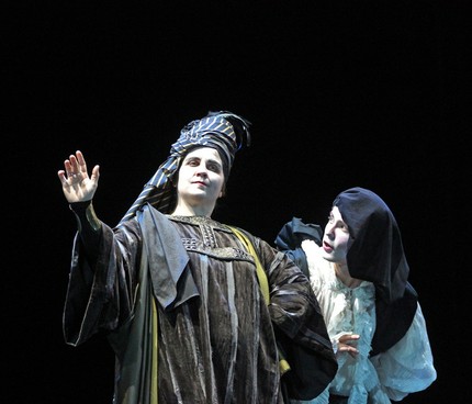 И всё же филологический интерес к этой опере надо понимать не только в буквальном смысле, хотя ее либретто полностью опубликовано в буклете спектакля, что очень важно, с учетом орфографии и пунктуации издания Императорской Академии Наук 1755 года. Сей интерес вызывает и хрестоматийный античный сюжет, весьма целомудренно и, несмотря на продолжительность оперы, лаконично преломленный в русском ракурсе. Интересно и то, что это первая опера на русское либретто, а также осознание того, что, даже будучи написанной неаполитанцем Арайей, она, имея дело с либретто Сумарокова, убедительно мощно заявляет о рождении русской оперы еще до Глинки, жившего в романтическом XIX веке. Русская опера неожиданно возникает из синтеза старой формы итальянской оперы-сериа и традиций русского драматического театра. Всё это мы очень отчетливо слышим в музыке на спектакле. Ощущаем это и в либретто, когда просто его читаем.