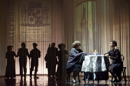 Партия Юлии – прекрасная работа Марины Шульги (она же солирует в опусе «Любовь святая» Свиридова, сопровождающем пластическую прощальную сцену с царской семьей). В партиях Бурсака и Калерии, от имени которой в пожилом возрасте через весь спектакль протянута нить памяти «от автора», вокал не предусмотрен вообще, но все три образа драматически привлекательны. Дементий Бурсак, внук Фёдора Бурсака (наказного атамана Черноморского казачьего войска в 1799–1816 годах) – казак по крови, но в душе – типично рафинированный интеллигент, сомневающийся и нерешительный, и в трактовке его образа Владиславом Емелиным это очень хорошо видно. Калерия (Наталья Арзяева) и Старая Калерия (Карина Петровская) – две проникновенно коррелирующие друг с другом грани одного характера, в котором загадки и тайны существенно больше, чем в Юлии. Пётр и Юлия рвутся домой в Россию, и нет сомнений: они вернутся! Но визит Старого Бурсака (Александр Безуглый) к Старой Калерии – тот единственно возможный открытый финал пьесы, который не оставляет сомнения: Бурсак к своей бывшей жене приехал лишь в гости.
