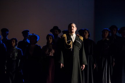 Уместить целый роман-эпоху в стандартный хронометраж театрального действа в двух отделениях с антрактом, при всём желании, невозможно, ведь упоение живой и терпкой красотой русского слова, испытываемое при чтении романа, и атмосфера театра, воздействующего на сознание зрителя по принципу «здесь и сейчас», – категории заведомо разнородные, несопоставимые. Но зато на сей раз специфика музыкально-драматического спектакля дает уникальный шанс объединить в рамках одного проекта разные творческие коллективы «Премьеры». Задача их режиссерской и музыкальной координации непроста, но как истинные профессионалы своего дела и режиссер-постановщик Николай Панин, и дирижер-постановщик Владислав Карклин (художественный руководитель Музыкального театра) справляются с этим отлично! Симфонический оркестр, Хор (хормейстер – Игорь Шведов), а также солисты и артисты Музыкального театра в составе «Премьеры» как раз и составляют академический остов, музыкально-драматическое ядро спектакля.