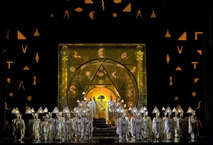 Ничем особым не запомнилась бы и сама эта постановка, если бы не участие в ней Аиды Гарифуллиной, озарившей спектакль искренне чистым светом вокальной надежды... Той самой надежды, которая «Волшебной флейте» Джули Тэймор вовсе не требуется, ведь и постановочные, и вокальные, и оркестрово-музыкальные основания этой постановки на редкость прочны. За дирижерским пультом спектакля сегодня, как и на премьере 2004 года, – несравненный маэстро Джеймс Ливайн, музыкальная легенда XX и XXI века, легенда живая, творчески-созидательная!