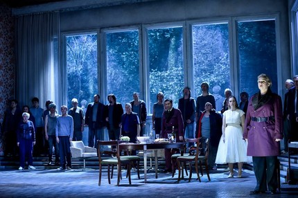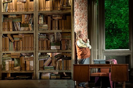 А я поблагодарю ещё сценографа Каспара Цвимпфера за ностальгические обои в цветочек и ГДР-овскую мебель.