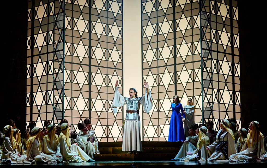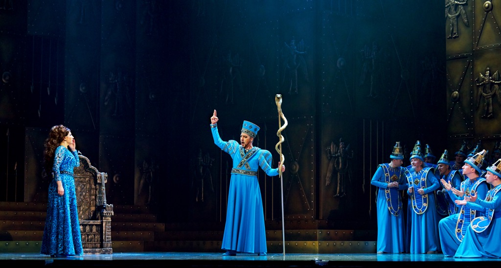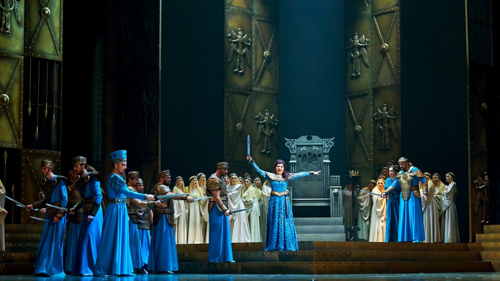 В последние годы от всевозможных жестких актуализаций, связанных с этой оперой и волюнтаристски привнесенных в либретто, оперирующее ветхозаветной тематикой, мы успели изрядно подустать: что ни постановка, то холокост, газовые камеры и навязчивые политические аллюзии с новейшей историей. Эти темы, безусловно, важны, но к шедевру Верди на либретто Темистокле Солеры ровным счетом никакого отношения не имеют! Так что мобильно-легкая, но выразительная сценография с общими намеками на эпоху пророка Захарии и царствования Навуходоносора II (Набукко), условно-стилизованные под нее костюмы и довольно статичные, но сюжетно оправданные «фундаментально-разводные» мизансцены рождают ту яркую «театральную глыбу», которая, оставаясь верной оперной эстетике XIX века, воспринимается отнюдь не архаично, а очень даже современно!