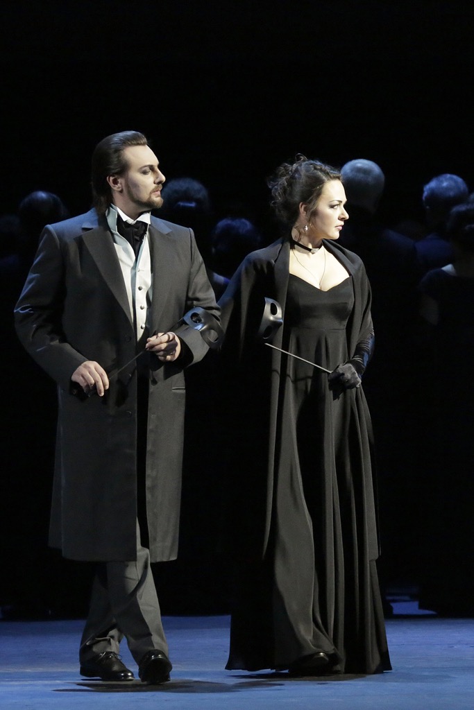 Голос другого баритона Геворга Акобяна драматически зычен и вполне фактурен, но предъявленные певцом силовая манера вокализации и тесситурная несвобода попутчиками музыкально благодатной партии Томского с ее роскошной «певучей» балладой предстают далеко не самыми спорыми и вдохновляющими.
