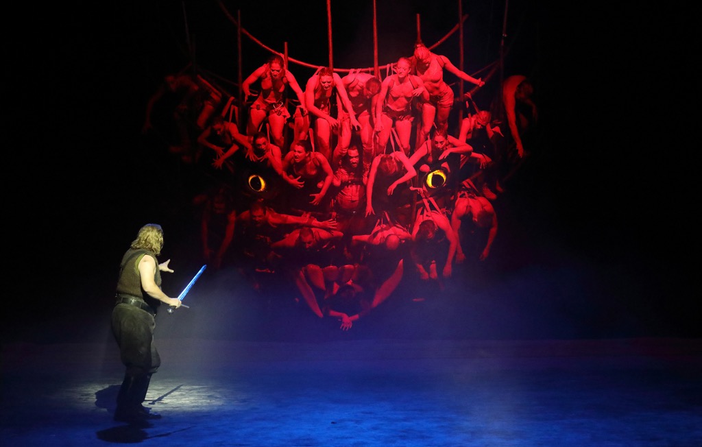 В тетралогии «Кольцо нибелунга» режиссер экспериментирует с архетипами мифологического сознания, с нарративом «коллективного рассказа», с драматургией «всеобщего действия», сознательно избегая внешних сценических атрибутов. При этом режиссер транслирует вагнеровские символы в театральной реальности человеческой пластики, движения, цвета, огня. Сценическую архитектонику спектакля создает чрезвычайный материал – живая, динамичная субстанция человеческого тела, обеспеченная участием более 100 статистов.