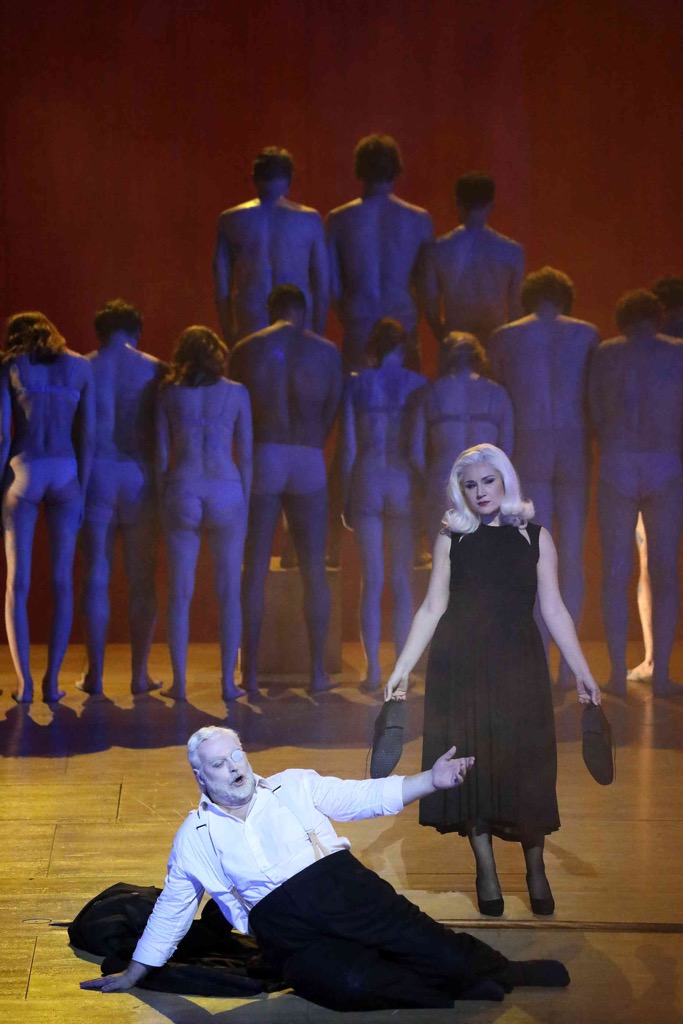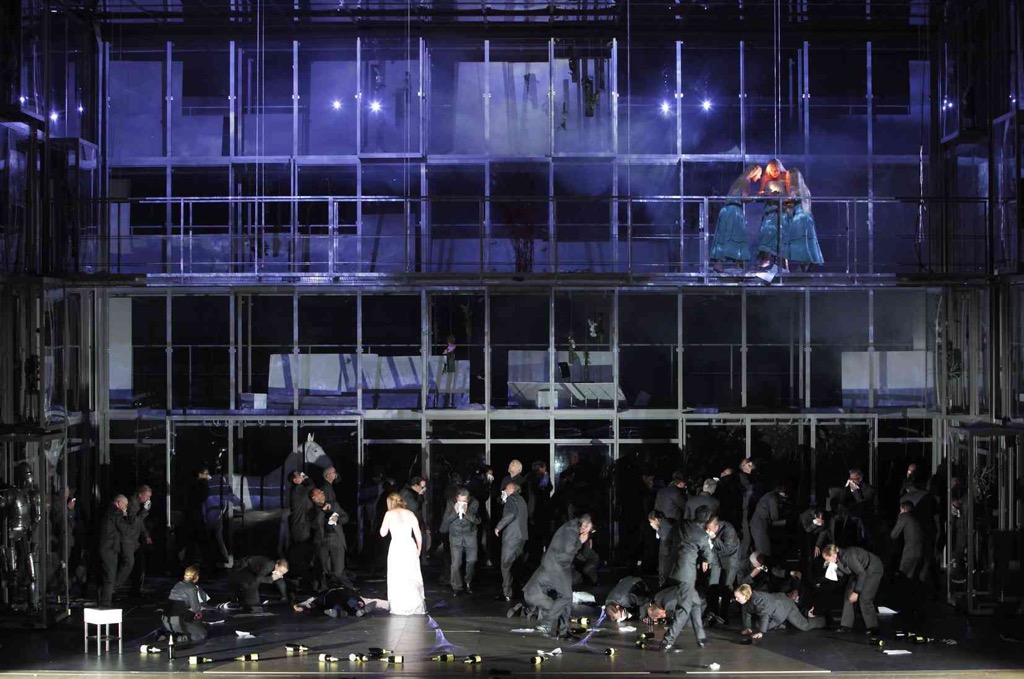 Центром колоссальной метаморфозы Брунгильды от коллективного образа валькирии к суверенной личности является прощальная сцене с Вотаном. Режиссёр отказался от каких-либо комментирующих и декоративных элементов сценографии, свел к минимуму фоновые сцены и статистов, полностью посвятив заключительную сцену Вотана и Брунгильды исполнителям. Попутно напомню, что в имени Brünnhilde от Brunne, brinnan таится слово светить, гореть, что намекает на преображение валькирии под воздействием огненного божества Логе.