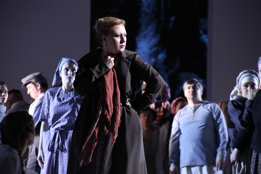 На втором премьерном спектакле 1 марта, о котором и ведется речь, из очень ровного и, в целом, впечатляющего вокально-актерского ансамбля в музыкальном плане, увы, выбивается драмсопрано Ольга Гурякова (Костельничка). Время над ее некогда большим и сильным голосом оказалось безжалостно, но как актриса, как певица, завораживающая скульптурностью пластики и мощным выплеском обжигающей энергетики, произвести впечатление она всё еще способна! Подлинное открытие спектакля в партии Енуфы – сопрано Елена Безгодкова: это имя для рецензента новое, но его обладательница – яркая, прекрасно оснащенная певица-актриса! Небольшую партию Старой Бурыйи на редкость изумительно проводит опытная меццо-сопрано Ирина Чистякова. Органично хороши и музыкально состоятельны оба тенора-соперника – Евгений Либерман в партии Штевы и Кирилл Матвеев в партии Лацы. Прекрасны трактовки хоровых (главный хормейстер – Станислав Лыков) и прихотливо жестких, музыкально «колючих», восхитительно терпких, мощно проникающих в глубины слушательского подсознания оркестровых страниц под управлением музыкального руководителя и дирижера постановки Евгения Бражника.