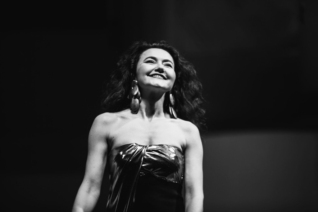 Нет и другой крайности, когда, независимо от голосового багажа, певец применяет усиленное актерствование, ложно понимаемую выразительность. Вокальное мастерство д’Устрак сосуществует с актерским абсолютно гармонично, одно не прячется за другое, всего ровно столько, сколько нужно, и не каплей больше. Артистка выглядит и держится на сцене с исключительным достоинством, по-королевски, без тени вульгарности носит золотой шлейф. И конечно, неординарные внешние данные помогают ей строить образы царственных роковых красавиц.