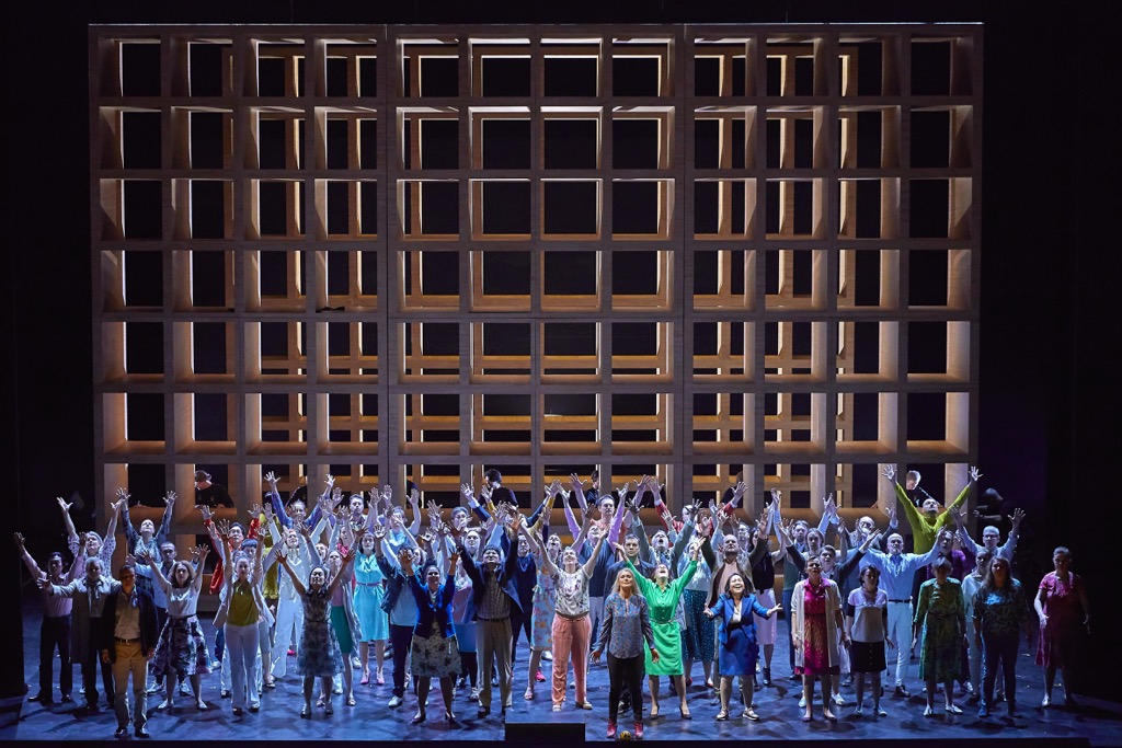 Идея вселенской информационной матрицы, ячейками которой являются человеческие судьбы, – вот главная визуальная основа этой инсталляции. Ячеистые сценографические конструкции, перемещаемые по сцене на протяжении всего спектакля и выстраиваемые в различных «архитектурных» сочетаниях, ассоциируются с ячейками колумбария. С одной стороны, ассоциация довольно прямолинейная, но, с другой стороны, в постмодернистском сценографическом пространстве, населенном смешанным хором и певцами-солистами, существующими в этих ячейках и поющими реквием, словно самим себе, эта идея своего рационального зерна, конечно же, не лишена. Иное дело – зачем вообще было ставить этот опус Верди, для сцены не предназначенный?
