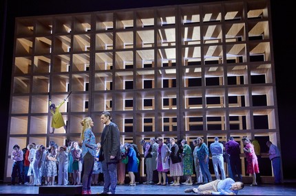 У другого художника она могла бы оказаться и диаметрально противоположной, так что отношение к обсуждаемому спектаклю – не вопрос концепции, а вопрос сиюминутно рождаемых им эмоций, мерило художественной ценности которых – степень комплексного визуально-слухового воздействия. Для автора этих строк оно явилось вполне достаточным для того, чтобы если и не влюбиться в постановку, то, по крайней мере, проникнуться к ней вполне респектабельным доверием. Безусловно, немалый вклад в это доверие вносят и прекрасная трактовка хоровых страниц (хормейстер – Эберхард Фридрих), и пронзительно чувственное, завораживающее звучание оркестра под управлением молодого дирижера ганско-германского происхождения Кевина Джона Эдусея.