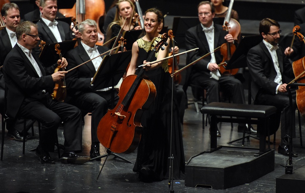 Ля-минорный концерт Р. Шумана для виолончели с оркестром был с таким же блеском и филигранной выделанностью пассажей исполнен аргентинской виолончелисткой Соль Габеттой. Не скажу, что это прочтение не оставило у меня вопросов (слишком уж мясистой мужской акцентацией оно отдавало, несмотря на пунктирную точность выделки звукового полотна), но сыграно всё было отменно. В исполненном в качестве бонуса виолончельном квартете Катсариса С. Габетта показала всё-таки, что она владеет не только брутальным мужским стилем, но и может виртуозно выплетать сияющее макроме с чисто женской нежностью и изяществом (затянутый темп исполнения лишь оттенил пленительную кантилену центральной сольной партии).