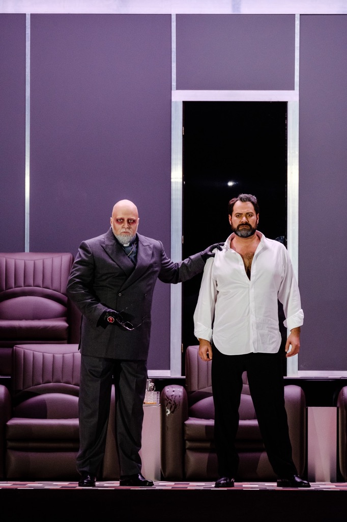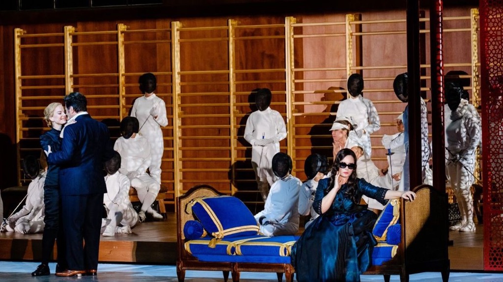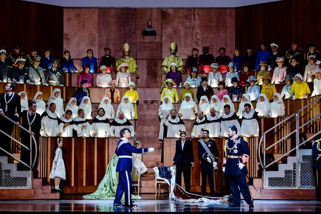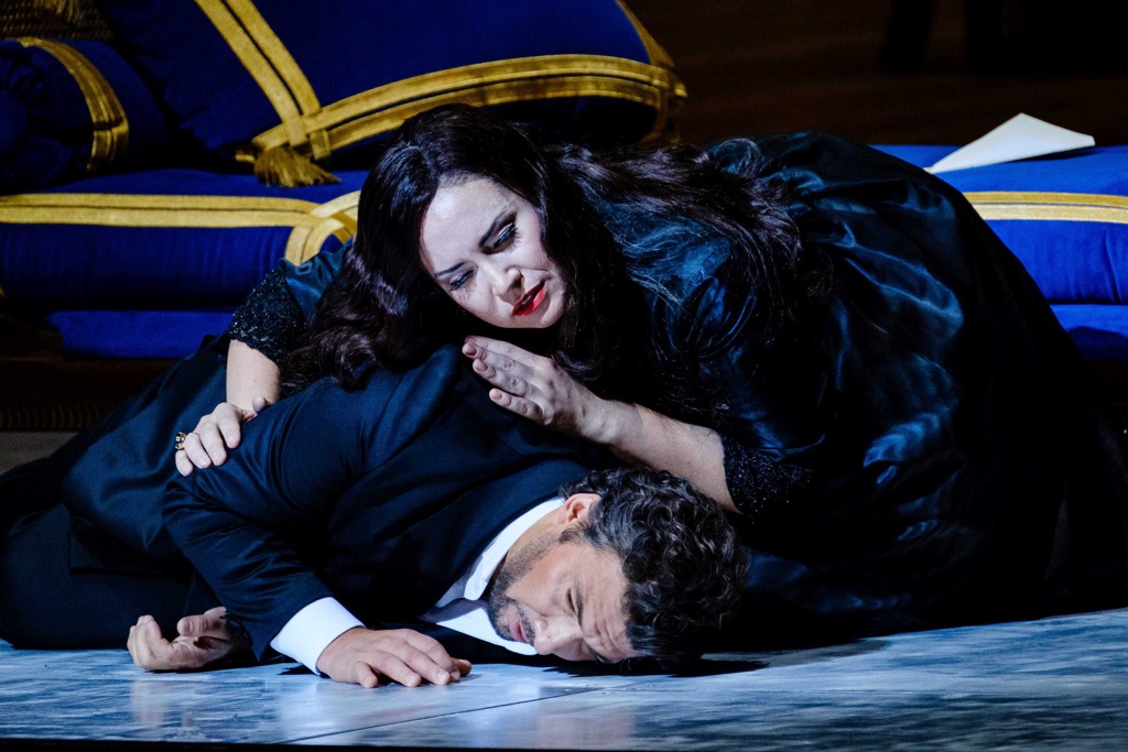 Сами редакционные вопросы целью данного обзора не являются, но кое-что в этом плане можно почерпнуть из ссылок, приведенных выше. Если же рискнуть сказать одним махом, то в парижской трансляционной постановке нынешнего сезона есть всё (за исключением дивертисмента «Балет королевы»). Во всяком случае, если даже и слегка ошибиться, то «новых» французских фрагментов на этой трансляции довелось услышать гораздо больше, чем это, к примеру, было в вышеупомянутой гибридной постановке театра «Ла Скала». Как раз в этом и заключается подлинное меломанское счастье! Но оно ведь было дополнено и звездным составом певцов-солистов! В постановке, абсолютно чуждой исторической адекватности, им фактически пришлось создавать не архетипы, а характеры, обусловленные коллизией общечеловеческого поведения в конфликтно-драматических ситуациях, которых в сюжете этой оперы предостаточно. Теперь исторические типажи – наши современники, и в их образах мы видим лишь сценические alter ego певцов-артистов, которым как старым добрым знакомым доверяешь уже просто потому, что за ними тянется длинный шлейф медийности и театральных ролей.