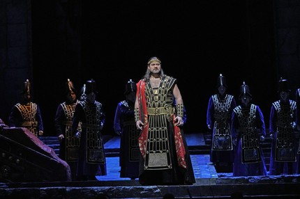 Среди партий Ильдара Абдразакова, в которых его довелось услышать на оперной сцене вживую, а не в прямой трансляции и не в записи, партия Ассура в «Семирамиде» для рецензента наиболее памятна и дорога. Во-первых, потому, что в 2003 году это было на родине композитора в Пезаро в рамках одного из престижнейших оперных фестивалей, который ежегодно проводится там с 1980 года. Во-вторых, потому, что это было первое живое знакомство с грандиознейшей партитурой, которое захватило настолько сильно, что намереваясь посетить спектакль единожды, ваш покорный слуга побывал на нем тогда, как и на кинопоказах «Дон Карлоса» из Парижа, трижды!