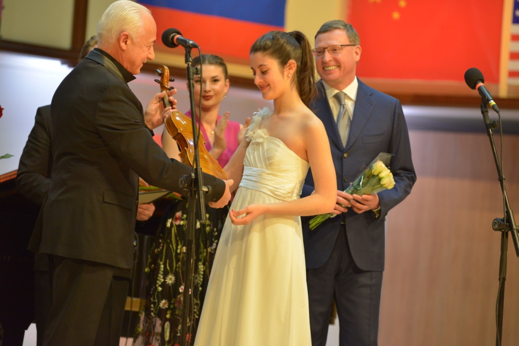 1 мая состоялась торжественная церемония награждения лауреатов IV Международного конкурса скрипачей им. Ю.И. Янкелевича, сообщила пресс-служба Омской филармонии. Почетный президент конкурса, народный артист СССР Владимир Спиваков вместе с председателем жюри конкурса, профессором Пьером Амуайялем поднялись на сцену Органного зала, чтобы поблагодарить каждого из участников и вручить почетные дипломы лауреатов, памятные ювелирные наградные знаки и премии. Вечером в рамках заключительного Гала-концерта лауреатов на сцене Концертного зала победительнице из Испании Марии Дуэняс был вручен главный приз конкурса — антикварная скрипка работы венецианского мастера Эухенио Дегани.