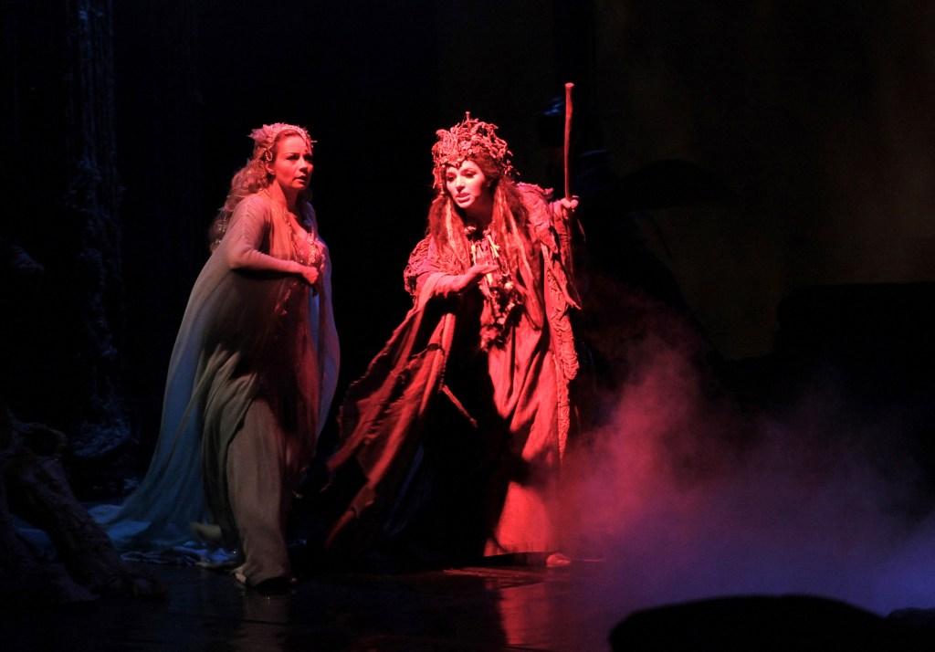 Согласно заклятию трансформации, наложенному Бабой-ягой, бедная Русалка в облике прекрасной незнакомки, покорившей Принца, во втором акте безмолвна, но в третьем акте драматизм ее партии, что никаких проблем у певицы не вызывает, достигает необычайно сильного накала, пропущенного через всю боль неопытной русалочьей души. Хотя особо запоминающихся ариозных моментов в партии Принца как будто бы и нет, музыкально благодатна она не менее, а ее лирическая, в целом, фактура в финале также требует, в известной степени, вокального драматизма. Никаких проблем на этот счет нет и у тенора Рихарда Самека, составляющего с исполнительницей главной партии великолепный дуэт. Дуэт Принца с Чужеземной княжной (сопрано Анда-Луиза Богза) также вполне удачен. Хорош и дуэт-вставка (фактически игровая «интермедия») Егеря (Ян Ежек) и Поваренка (Ленка Павлович), в которой Поваренок – партия-травести. Запоминается и меццо-сопрано Вероника Гайнова – колоритно-фактурная, «покладистая» и вовсе не страшная Баба-яга…