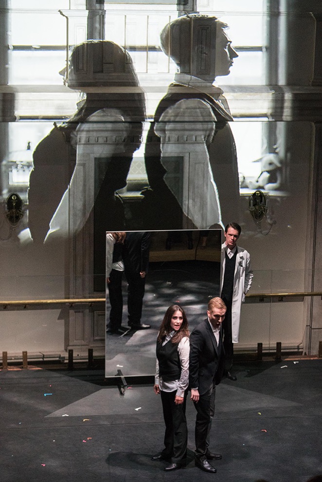 Постановщик Наталья Шурганова попробовала поверх классических для галантного века любовных ламентаций рассказать о модной теме гендерной самоиндефикации. На помощь она призвала видеомэппинг (лица героев заранее сняты крупным планом на экране), банальное переодевание девушки в мужской костюм и заигрывание персонажей с огромным зеркалом на колёсиках.