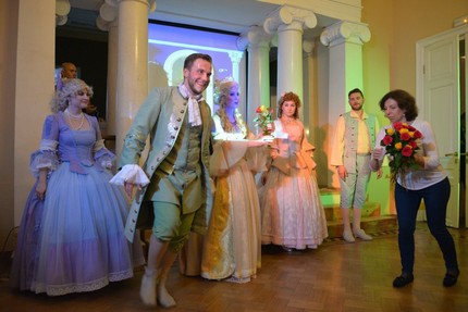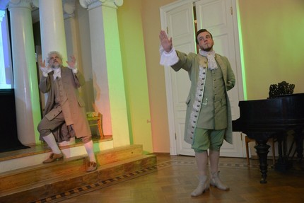 Опера «Скупой», премьера которой состоялась в 1782 году в Санкт-Петербурге, не такой уж раритет — ей не просто повезло сохраниться, к ней иногда обращаются в наши дни. Тем не менее, любая русская музыка XVIII века для современного слушателя по-прежнему редкость, звучит не каждый день. Поэтому не испугавшись анонсов «мюзикл XVIII века», «современный саунд» и т.п., мы решительно отправились на встречу с оперой Пашкевича. Место, где была назначена эта встреча, заслуживает отдельной ремарки. Дом-музей Станиславского в Леонтьевском переулке, со знаменитым белоколонным залом, где рождались многие оперные идеи Константина Сергеевича, сегодня стал центром ряда молодежных музыкальных проектов.