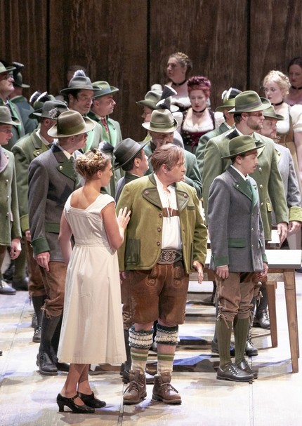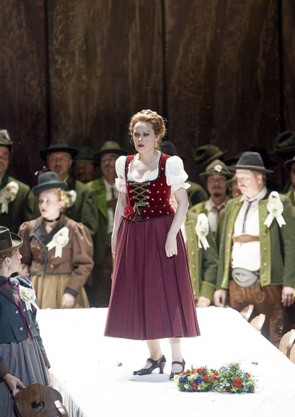 Я очень люблю в партии Эльзы Аню Хартерос. Но сегодня пела не Аня, а Аннетте, и не Хартерос, а Даш. Эту очаровательную, как Любовь Орлова, певицу я слышал в той же партии в Байройте. Там же я понял, что слушать А. Даш я больше не хочу: прекрасный звонкий кинематографический тембр, совершенно своеобразная не похожая ни на что техника, запутанный в паутине собственного обаяния звук, — полный набор аргументов на тему, можно ли петь Вагнера голосом Марии Мордасовой. У вас есть претензии к голосу Марии Мордасовой? У меня вот тоже нет. Она из народа, и Эльза из народа: «Играет мне гармошечка, играет и жалеечка, а я стою матрёшечка, пою как канареечка». Ну вот и всё, как говорится.