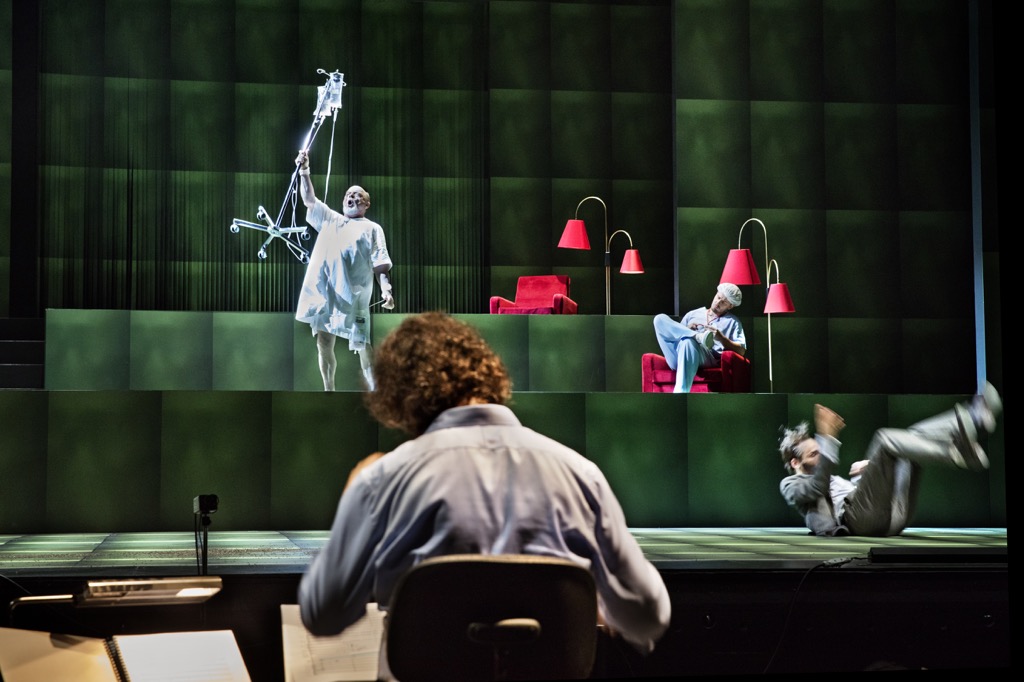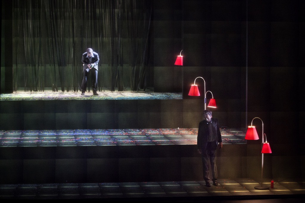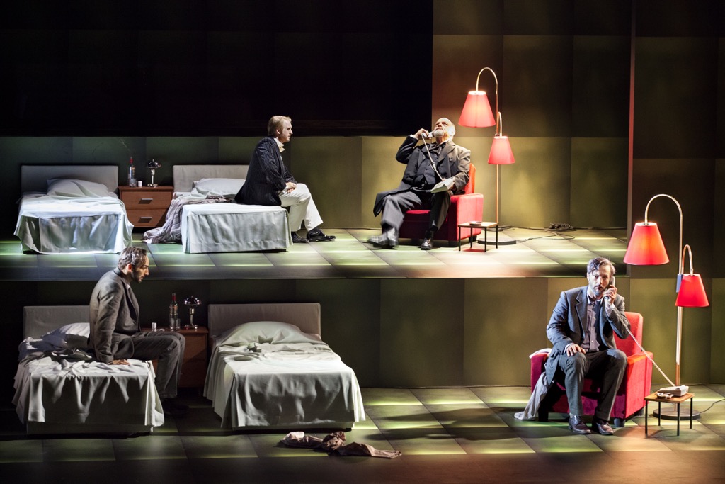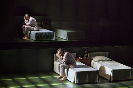 В спектакле Карин Хенкель, начало которого является его концом, а конец – началом, Алексей пытается переосмыслить всё то, что произошло с ним после крупного выигрыша в рулетку и расставания с Полиной (это как раз и расширяет рамки оперы, переориентируя ее на роман). Но в обсуждаемой постановке тема азарта игры в рулетку, подминающей под себя игрока, очень тонко и точно соприкасается с другим понятием, широко известным как русская рулетка (экстремальная азартная игра с летальным исходом). В начале спектакля думаешь, что Алексей мертв (на это намекает пятно крови, вытираемой с пола вошедшей в номер горничной), но он и его alter ego всего лишь тихо-смирно возлежат на кроватях.