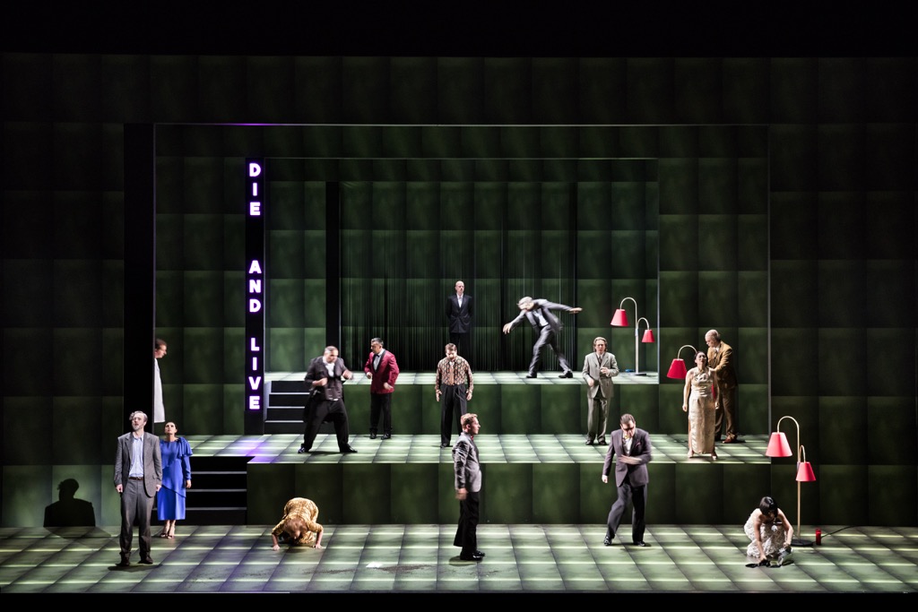 Парадокс партитуры Прокофьева – в одновременной компактности и психологической многослойности, в минималистичности и при этом несопоставимо большой философской глубине, так что творческие амбиции молодого русского гения и вправду были весьма впечатляющи и состоятельны: «сдуть пыль» с оперы XIX века им однозначно удалось! Сей опус зиждется на обыгрывании скрытой вложенности смыслов, возникающих, словно при раскрытии русской игрушки-матрешки, и в постановке Карин Хенкель (при участии даже не одного, а целых двух драматургов – немца Мальте Убенауфа и швейцарца Стефана Мюллера) для «вытаскивания» каждого последующего действия из предыдущего формат нон-стоп – вовсе не прихоть, а важный визуально-художественный прием.