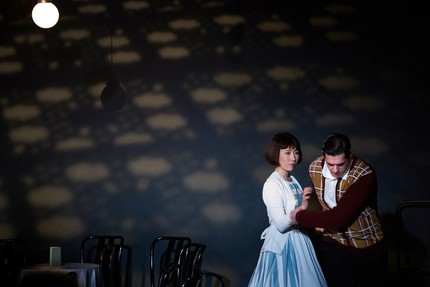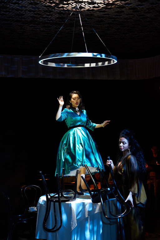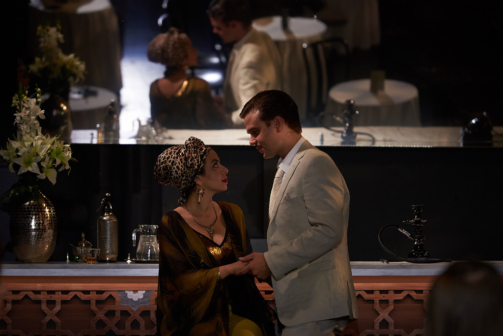 В буклете постановщики цитируют Руссо и Эриха Фромма на тему того, что человек должен быть мерой всех вещей, а не деньги, но осталось неясным, как именно они провели эти идеи в драматургически скучноватом спектакле. Низибис в пышном синем платье между своими колоратурами время от времени засыпала, лежа на столе, как будто бы у неё в сигаретах — не табак. Весело было только, когда из телефонной трубки вдруг раздалась ария.