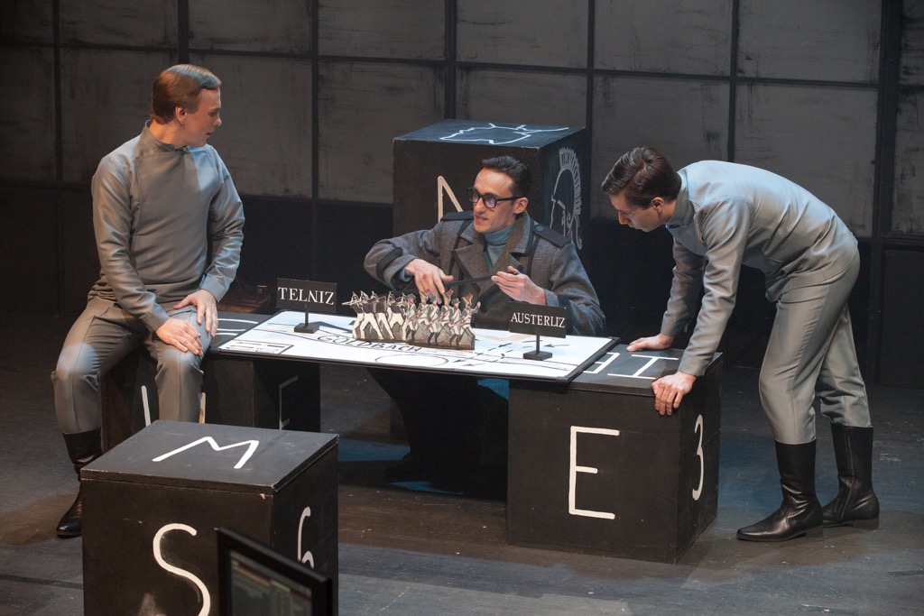 Музыкальный руководитель и дирижер – Алевтина Иоффе, но пронзительно-властным, «говорящим» звучанием оркестра убеждает и второй дирижер Иван Виноградов. При внятной дикции певцов, добротности их вокально-драматической выучки спектакль на пределе пульсации стального нерва движет вперед пацифистски-военная (перевешивающая войной) четверка героев: Иван Дерендяев (Оуэн), Максим Дорофеев (Лечмир, его друг), Игорь Витковский (Мистер Койл, педагог академии), Валерий Барский (Сэр Филипп). Рельефно-яркий вклад в противостояние с Оуэном-пацифистом, в его чудовищную травлю, вносит и весьма мощный женский «квартет»: Мария Козлова (Кейт), Ольга Белова (Миссис Койл), Мария Смирнова (Миссис Джулиан), Алиса Райская (Мисс Уингрейв, тетя Оуэна).