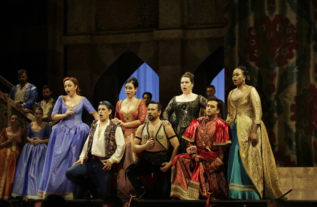 Разницы никакой, лишь бы было по-оперному красиво. А при позиционном, как в балете, выстраивании мизансцен с симметричным «стоянием» хористов и расположением солистов так и есть! Однако к «Риччардо и Зораиде» (в критической редакции Федерико Агостинелли и Габриэле Граваньи) фестиваль в Пезаро обращался всего лишь единожды в 1990 году (в 1996-м было и единственное возобновление первой постановки), так что меломанский интерес к этой продукции в любом случае огромен! Автору этих заметок услышать вживую «Риччардо и Зораиду» впервые довелось в 2013 году в Бад-Вильдбаде на фестивале «Россини в Вильдбаде», но на сей раз в Пезаро именно раритетность самого опуса заставила оказаться в числе его зрителей дважды (на втором и третьем показе в серии из четырех спектаклей). Совсем иное дело – запетый до дыр «Севильский цирюльник» в критической редакции Альберто Дзедды. Его вполне достаточно было посетить единожды, но лишь потому, что эту оперу, выдержавшую в Пезаро не одну постановку, знаешь, кажется, наизусть!