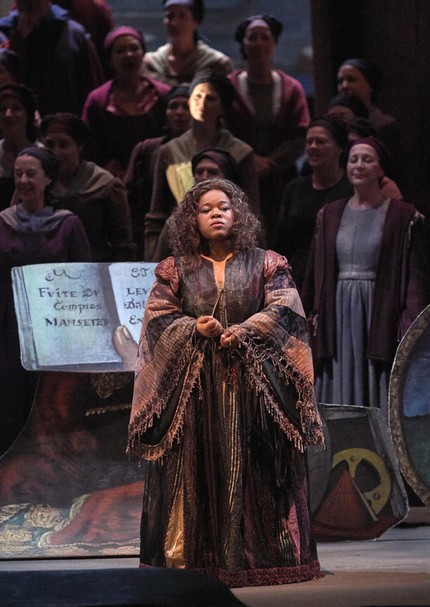 В спектакле, который я слышал, фантастически безупречно прозвучала только южно-африканское меццо-сопрано Бонгиви Накани, обертоново жирным тембром и роскошным маслянистым звуковедением исполнившая партию Ульрики.
