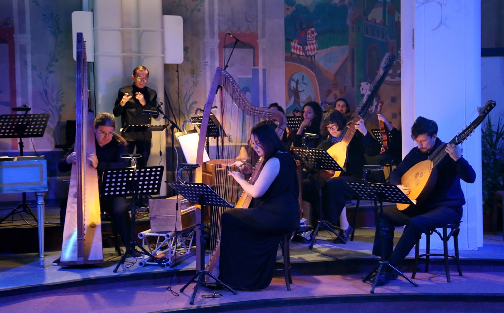 Великолепны мадригальные распевы хора (хормейстер – Вера Давыдова), поющего не только в ротонде, но и за ее пределами в нижнем фойе, что создает дополнительные акустические эффекты в сценах, связанных с подземным царством. Поистине изумительна, психологически масштабна и первозданно тонка, филигранна звуковая палитра оркестра Театра им. Н.И. Сац, инструментарий которого, за исключением современных струнных, звучащих без вибрато, – на этот раз уникальные копии исторических инструментов (музыкальный руководитель и дирижер – Валерий Платонов). Важно, что консультантом по барочному стилю в этом проекте выступает признанный в мире и хорошо нам знакомый корифей подобного рода старинной музыки Эндрю Лоуренс-Кинг (Великобритания), а в оркестре он занят в группе continuo как исполнитель на барочной арфе и регале.
