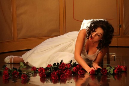 Спарафучиле в золотом жилете (Бруно Варгас) и Маддалена (Фелине Кнабе) пластично двигались в образах иронично-весёлых танцоров кабаре/варьете, иногда на проекционном экране танцевали их тени. Жаль, что для Бруно Варгаса, с его мягким красивым басом, не было в спектакле партий побольше (он же был и графом Монтероне).