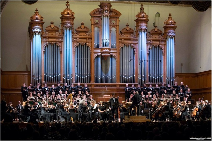В названный вечер прозвучал довольно редко исполняемый в наших концертных залах «Немецкий реквием» Иоганнеса Брамса для солистов (сопрано и баритона), смешанного хора и оркестра в семи частях (1865–1868, op. 45). Для этого свои творческие усилия объединили Государственный академический симфонический оркестр России имени Е.Ф. Светланова (художественный руководитель и главный дирижер – Владимир Юровский), Академический Большой хор «Мастера хорового пения» (художественный руководитель и главный дирижер – Лев Конторович), а также солисты Вероника Джиоева (сопрано) и Василий Ладюк (баритон).