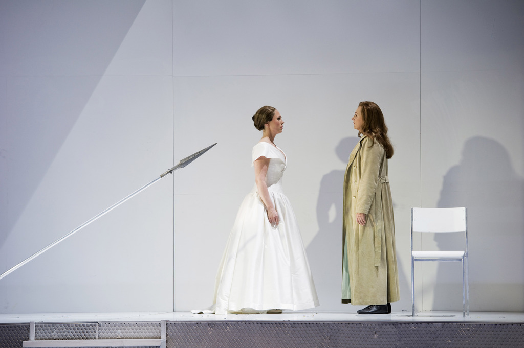 Как и в мюнхенской постановке Андреаса Кригенбурга, охламон Зигфрид у Гибихунгов переодевается в синий пиджак и пьёт неизменное шампанское. В третьем акте Шагер, видимо, вообразил, что он и вправду ничем не связанный герой — анархист, и показал пару вокальных фокусов, без которых можно было бы обойтись.