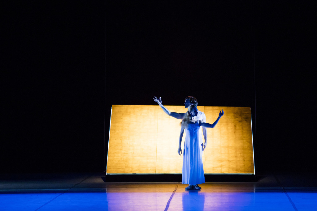 за белой стеной вдали другие исполнители с небольшим замедлением повторяют их движения, так что кажется, что одновременно разыгрывается и танец теней. Здесь Джон Ноймайер отдал дань художественной традиции показывать библейские события одновременно в разных измерениях.