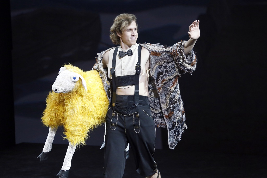 В театральном буклете «Кандид» числится опереттой, но постановка с микрофонами превратила его в заштатный мюзикл с вокальными номерами на оригинальном английском и диалогами на переводном русском, а перевод зачастую был весьма скабрезен. Изысканно тонкий, рафинированный театр абсурда, созданный Бернстайном и его либреттистами по плутовскому роману Вольтера, режиссеру Алексею Франдетти с его брутально-резкими, прямолинейными мизансценами и финальной клюквой утопии «колхозного социализма» постановочно не удался. Разочаровал и сценограф Тимофей Рябушинский с его линейкой наивно-иллюстративных видеопроекций – анимационных картинок-мультиков. Фиаско – и у художника по костюмам Виктории Севрюковой, одевшей «кукольных» персонажей известного, но неправдоподобно закрученного, почти фантастического сюжета в агрессивно-натуралистичные костюмы: эстетике высоких музыкально-философских сфер они оказались заведомо чужды.