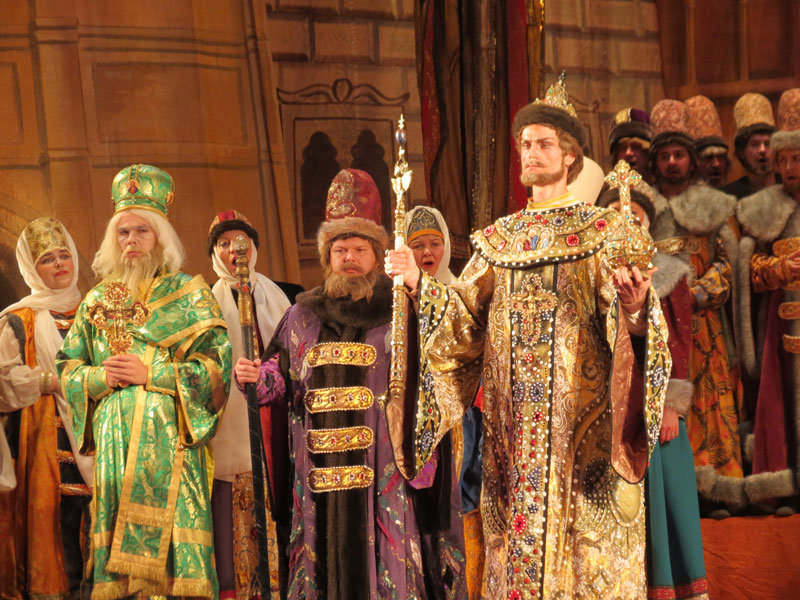 К счастью, в «Годунове» придраться оказалось не к чему. Спектакль (режиссёр-постановщик Отар Дадишкилиани) идёт в изумительных реалистичных декорациях, выполненных по эскизам Фёдора Федоровского (художник-постановщик Виктор Немков, художник по костюмам — Людмила Волкова), солисты — превосходные: Борис — Станислав Трофимов, Марина Мнишек — Надежда Сердюк, Самозванец — Сергей Семишкур (все из Мариинского театра), Хозяйка корчмы — Елена Шевченко, Юродивый — Алексей Куколин, Пимен — Александр Сильчук (солисты Нижегородской оперы). За дирижёрским пультом — Алексей Богорад. Ставим пять звёзд и переходим к балетам.