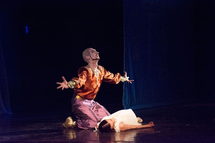 В отличие от, скажем, «Бахчисарайского фонтана»-драм-балета, идущего в Мариинском театре в хореографии Ростислава Захарова (1934), нижегородский «Фонтан» очень танцевальный. В первом акте и первой картине — лирический дуэт солистов Нижегородской труппы Татьяны Казановой (Мария) и Андрея Орлова (Вацлав), оба в нежных белых костюмах (художник-постановщик — Евгений Спекторов). Позднее следует сольная вариация Марии, затем — Вацлава. У высокого, симпатичного, длинноногого Андрея Орлова красиво получается всё: и прыжки, и вращения, и позы.