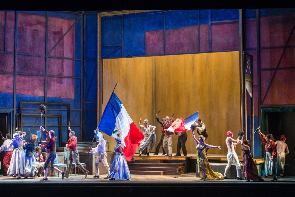 Место действия в «Андре Шенье» меняется в каждом действии, но сценограф Жюстин Ариенти использует для всех них единое пространство.